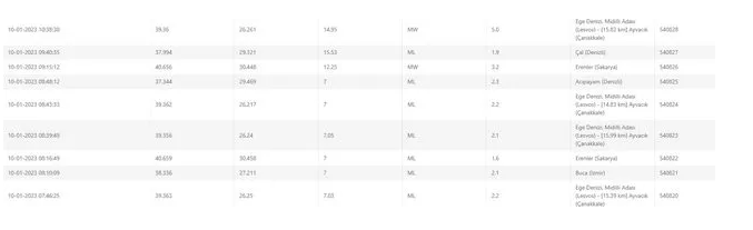 AFAD’dan gelen son dakika açıklamasına göre saat 10.38’de merkez üssü Ege Denizi olan 5 büyüklüğünde bir deprem meydana geldi. Deprem Çanakkale’nin Ayvacık ilçesine 15.82 kilometre uzaklıkta gerçekleşti. AFAD depremin derinliğini ise 14.95 kilometre olarak açıkladı.